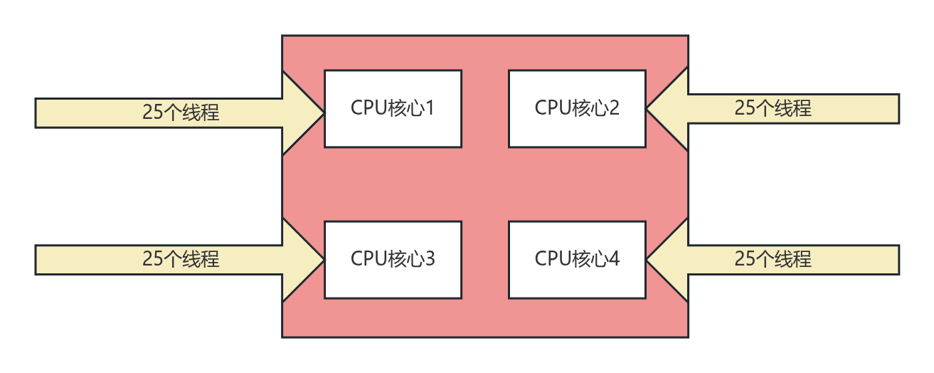 在这种模式下,线程的数量与 CPU 核心数相匹配。当有请求进来时,每个线程都可以独占一个 CPU 核心,持续地处理任务。没有多余的线程需要排队和切换,因此CPU 的利用率最高,系统性能最好。