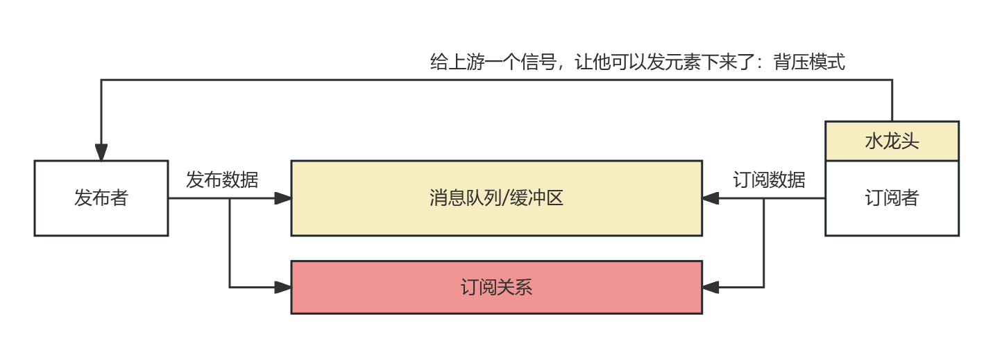 订阅关系(Subscription):这是连接发布者和订阅者的“通道”。这个通道是双向的,既用于数据的单向流动,也用于背压信号的反向流动。